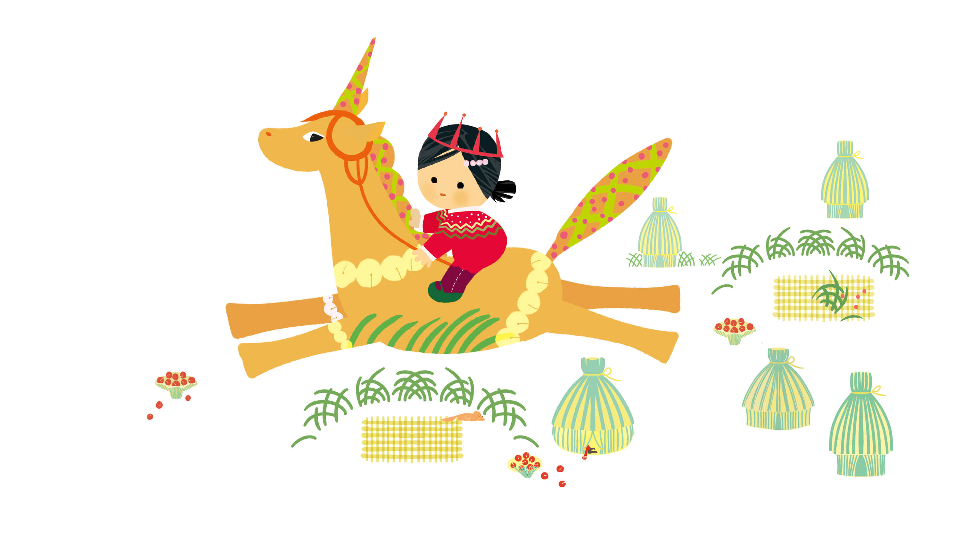어울리는 주제로 '말 탄 어린이'를 꾸몄습니다.